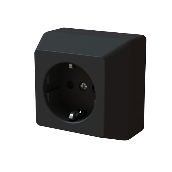 Harju HIILI-sarjan mattamusta maadoitettu 1-osainen pistorasia kuiviin tiloihin. Kytkentä ruuviliittimin. Kotelointiluokka IP20.